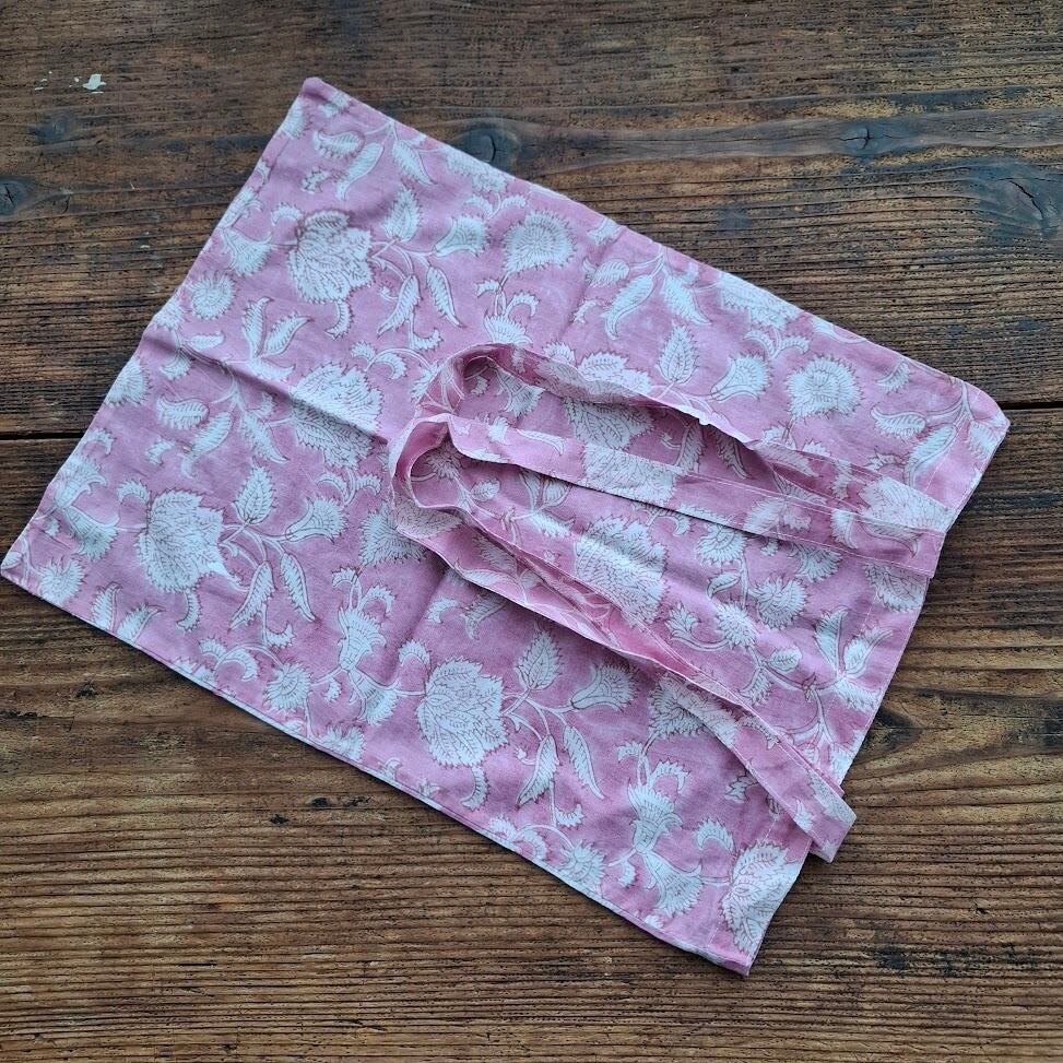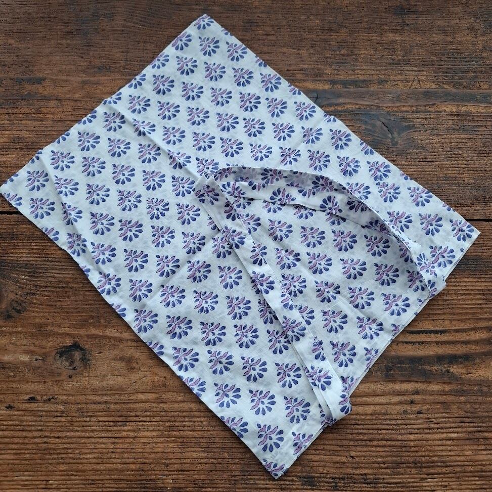 こちらは伝統的なインドのブロックプリント生地で作られています。