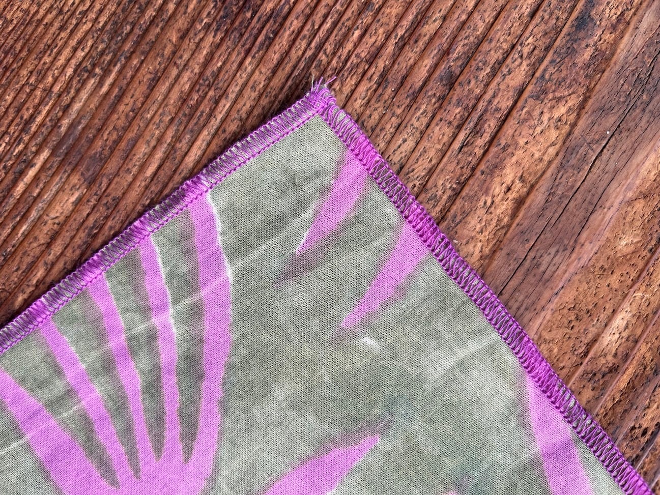 でも外出にタオルはちょっと・・・と思った私たち、外で首に巻いてもおしゃれな手ぬぐいを作りたいと、生地だけではなく、糸の色にもこだわりました。