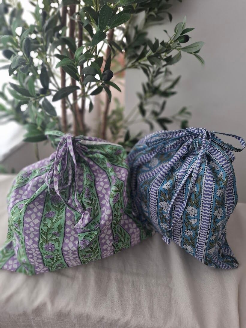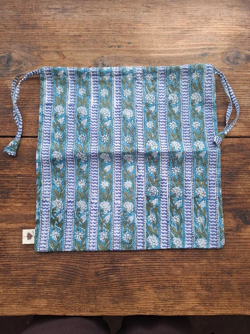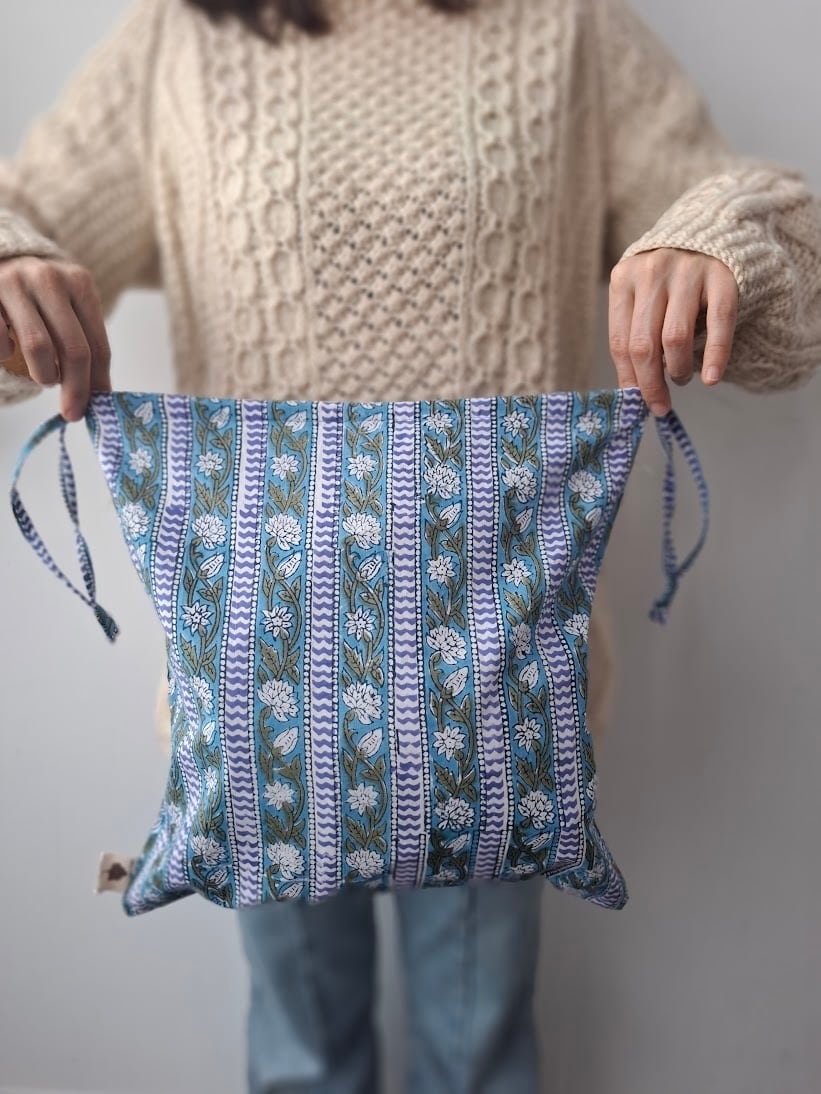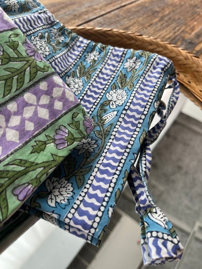 こちらは伝統的なインドのブロックプリント生地で作られています。