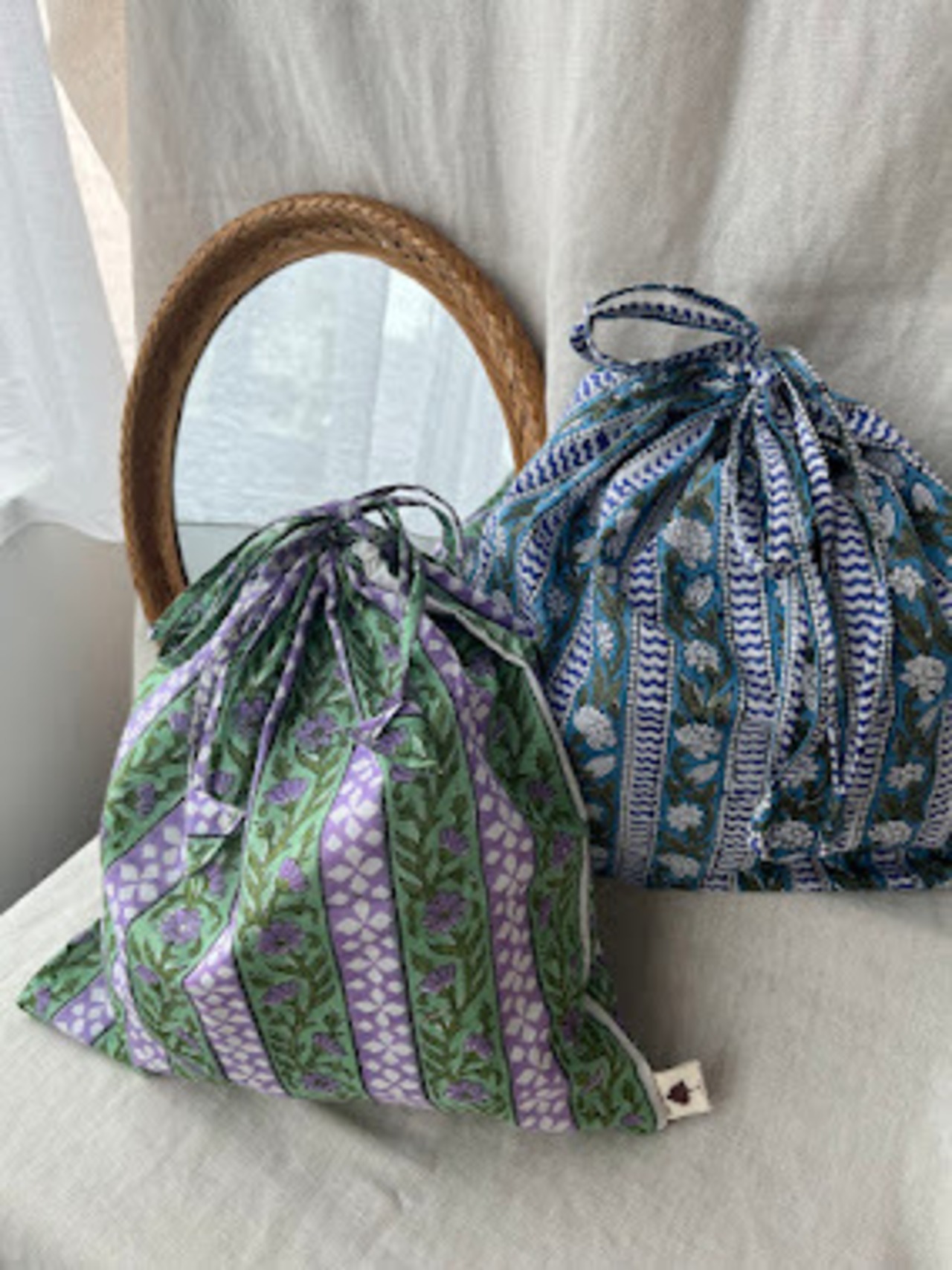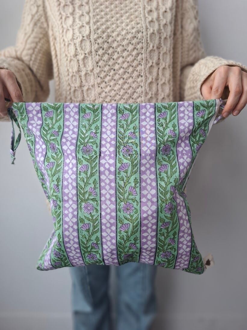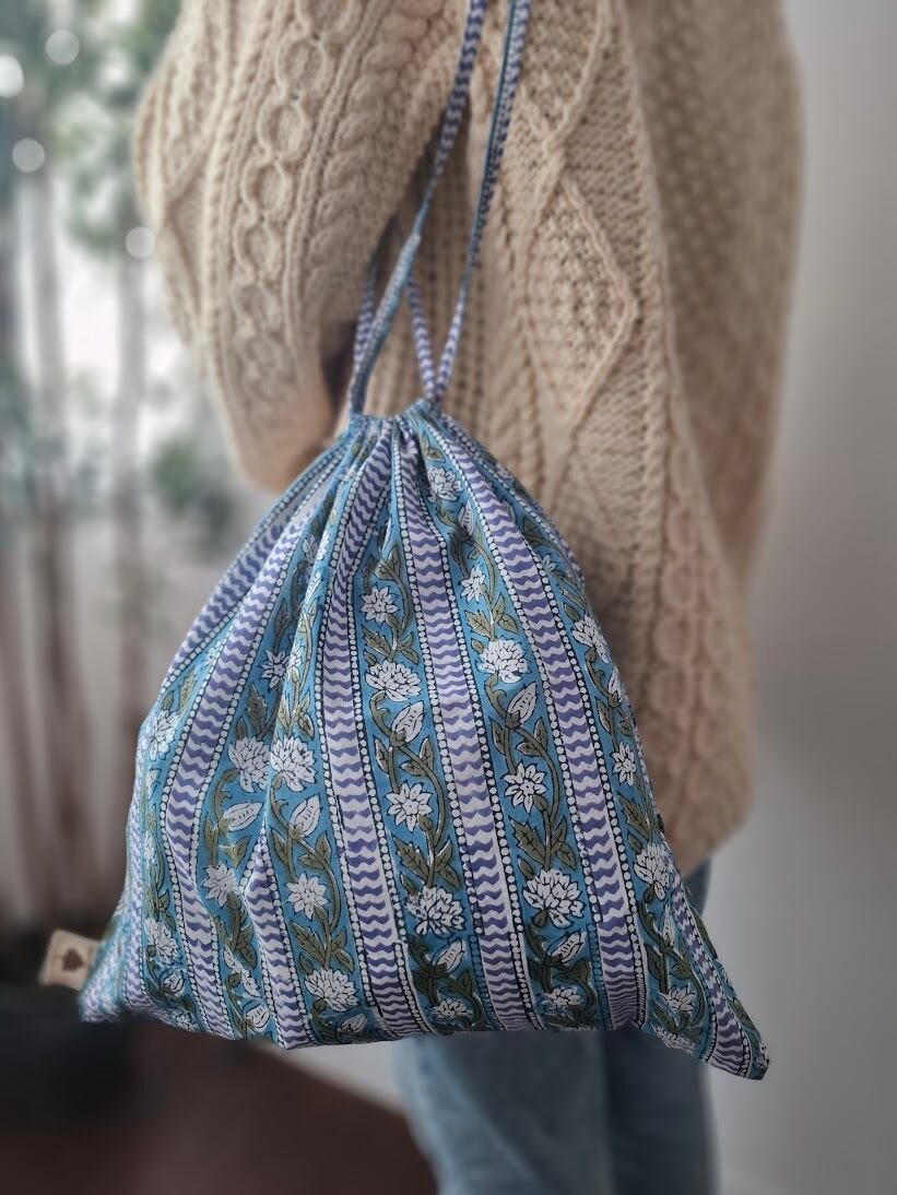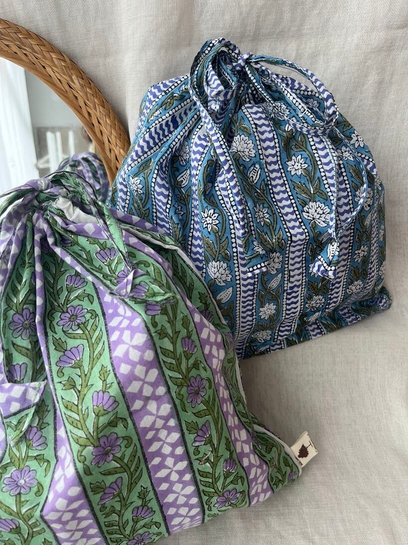 こちらは伝統的なインドのブロックプリント生地で作られています。