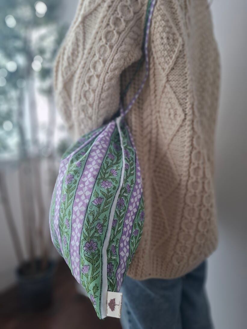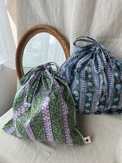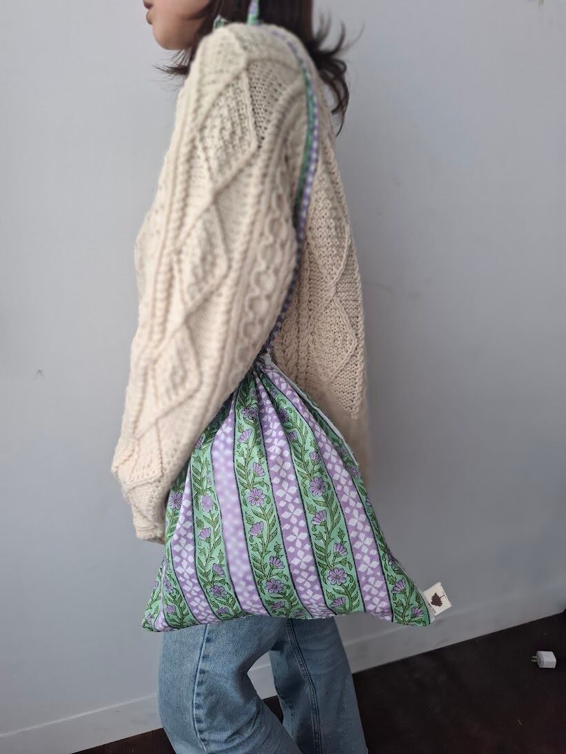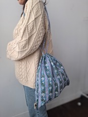 【New】ブロックプリント 紐長め巾着