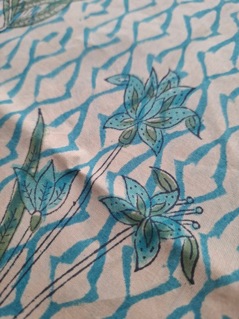 こちらは伝統的なインドのブロックプリント生地で作られています。