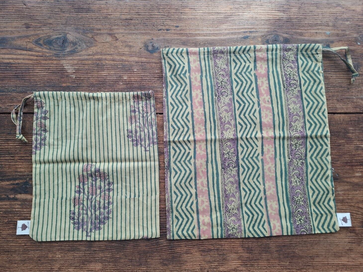 ブロックプリント パッキング用ペア巾着 くすみカラー