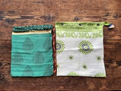 リサイクルサリーの巾着【小中2枚組】グリーン系ミックス
