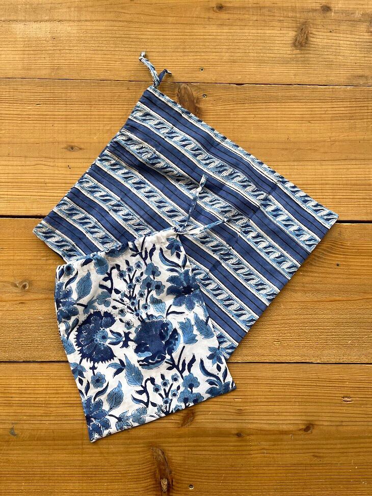 ブロックプリント パッキング用巾着 ブルー